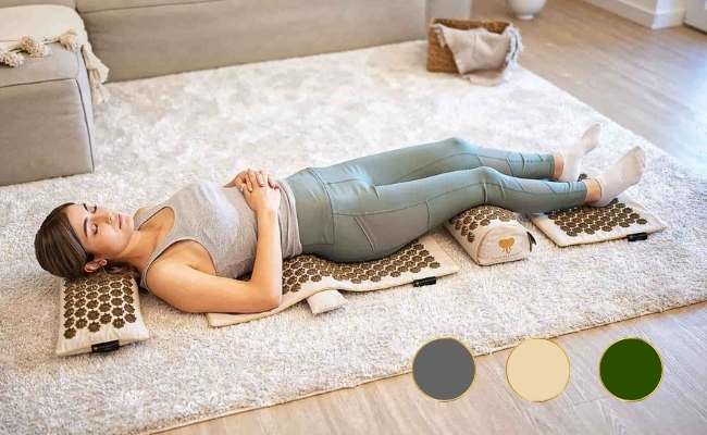 To achieve the desired effect of acupressure on all parts of your body, it is not enough to just lie down on a mat and pillow. Every body is unique. Some have a hollow back when lying down with flat legs. Some need more support in the neck or under the back of the knees.