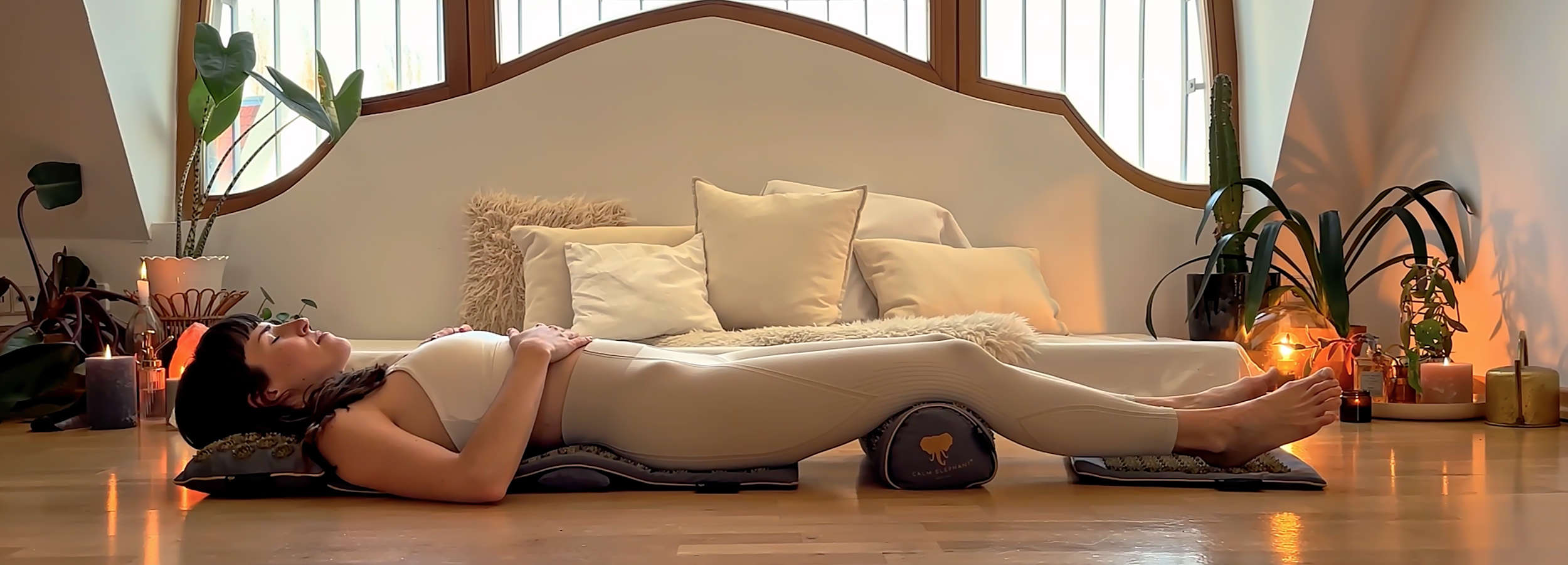 We also recommend a calm atmosphere without disturbances during a session with our acupressure mat, dimmed lighting, and our soothing CALM ELEPHANT ORIGINAL relaxation playlist, which with its gentle sounds contributes to an all-around worry-free package!